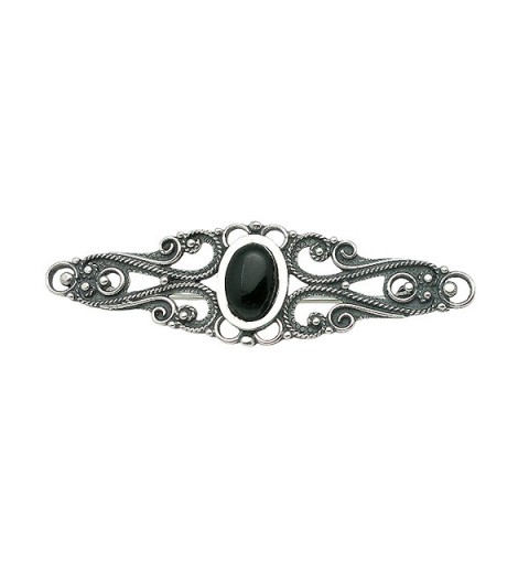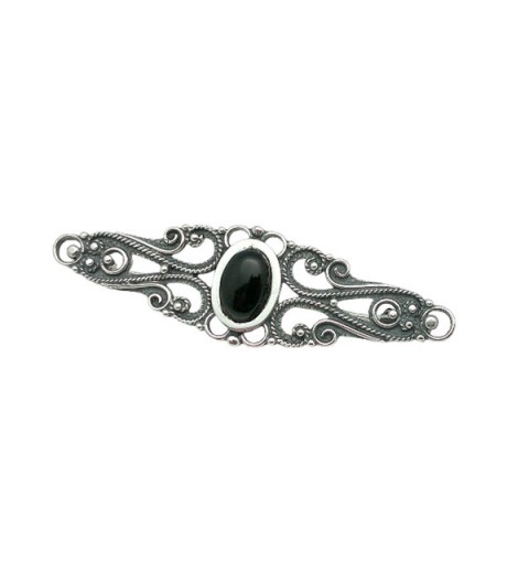 Discover the timeless elegance of this handcrafted brooch made of sterling silver and jet, a unique piece that reflects the tradition and expertise of the master silversmiths of Santiago de Compostela. Every detail has been carefully crafted by hand, following techniques passed down from generation to generation, making this brooch much more than just an accessory: it is a miniature work of art.