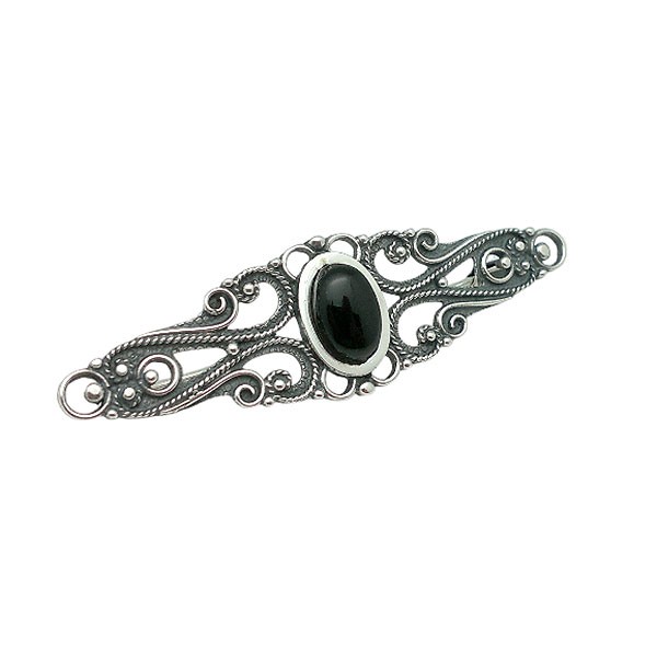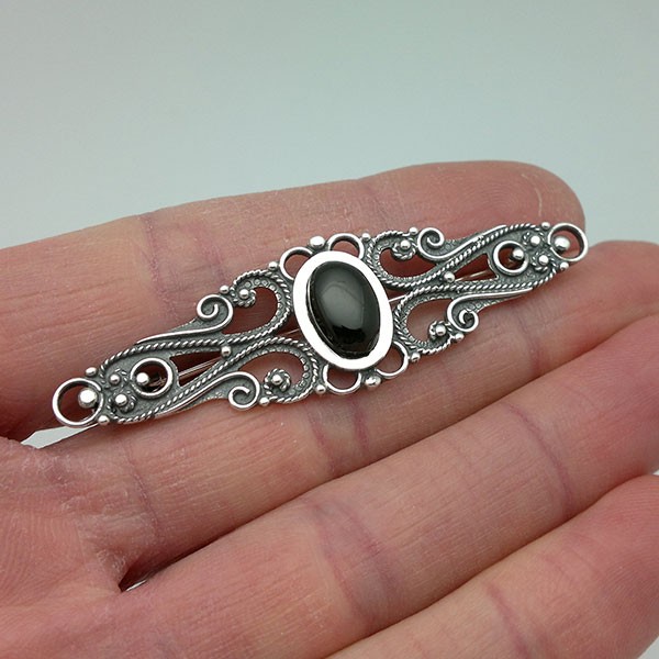 Handcrafted Sterling Silver Brooch with Jet – Made in Santiago de Compostela