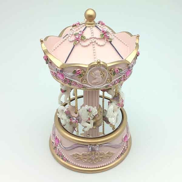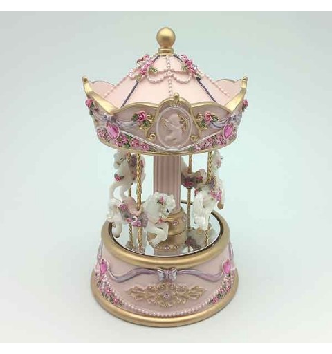 Bolero carousel in pink tones: Beautiful scale carousel with three horses, in pink, mauve and silver...
