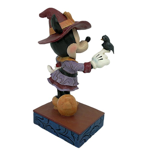 Add a touch of enchantment and magic to your home with this collectible Minnie Mouse figurine, designed by renowned artist Jim Shore. This unique piece features Minnie dressed in an adorable witch costume, with hand-painted details that highlight her cheerful personality and elegance. The figurine features Minnie interacting with a small black bird perched delicately on her finger, creating a scene full of warmth and tenderness.