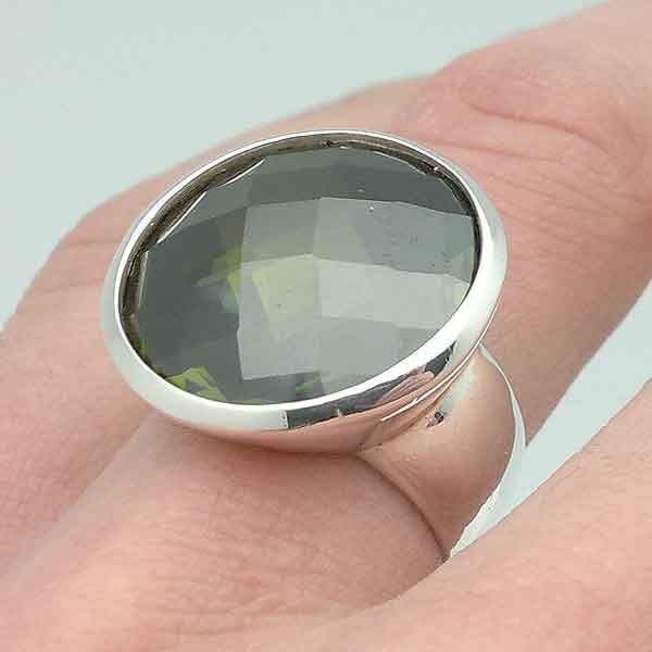 Ring in sterling silver and cubic zirconia in a nice olive green color.