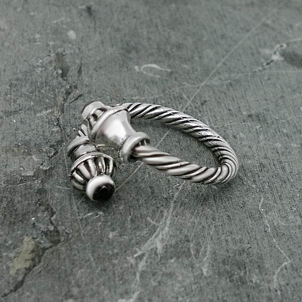 Torque type ring: beautiful handmade jewel in sterling silver and jet made by Galician goldsmiths
