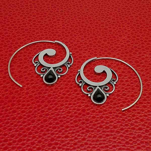 Pendientes con forma de aro, elaborados en plata de ley y azabache. Combinan la técnica ancestral de la filigrana con otras mas actuales como la plata lisa. Estos nuevos diseños, son muy frescos y actuales, por lo que combinan muy bien con cualquier prenda y son validos tanto para ocasiones especiales, como para el día a día. Diseñados y fabricados en Galicia (España).