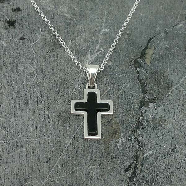 Este colgante de cruz en plata y azabache se presenta con cadena fina, resaltando la belleza natural de los materiales y asegurando un ajuste perfecto. Es un regalo ideal para bautizos, comuniones, confirmaciones o simplemente para expresar tu fe y estilo personal.