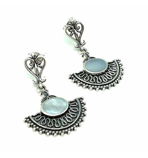 Pendientes en plata de ley y nácar, de estilo étnico.