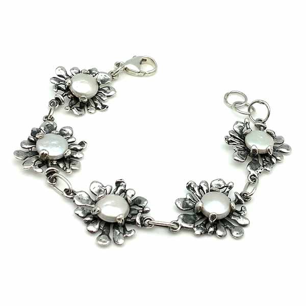 Pulsera de joyería contemporánea, se le llama así a la joyería artística que rompe con los parámetros tradicionales en los que el orfebre se inspira para crear joyería. En este caso, el joyero inspiró en el astro rey, el sol, lo que da como resultado esta espectacular pulsera en plata de ley y perlas cultivadas tipo coin, que rompe con lo tradicional, por lo que, si buscas diferenciarte o tener una joya distinta, esta es tú pulsera.
